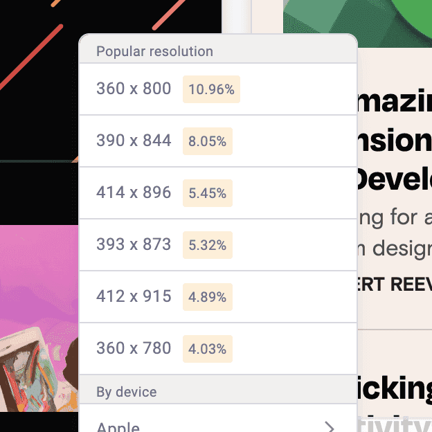 We have updated the extension to include a comprehensive list of resolutions, featuring a sublist of the most popular ones along with their popularity ratings.